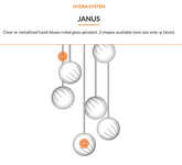 Hand blown ruled glass pendant clear metallic finish, 4 shapes available.