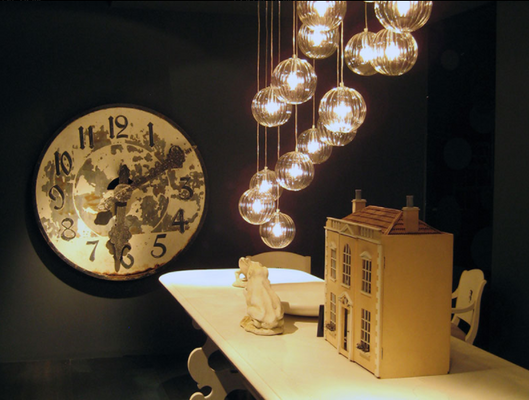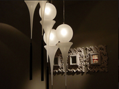 Also available with wall and floor support. Can be combined with “coral” glass pendants.